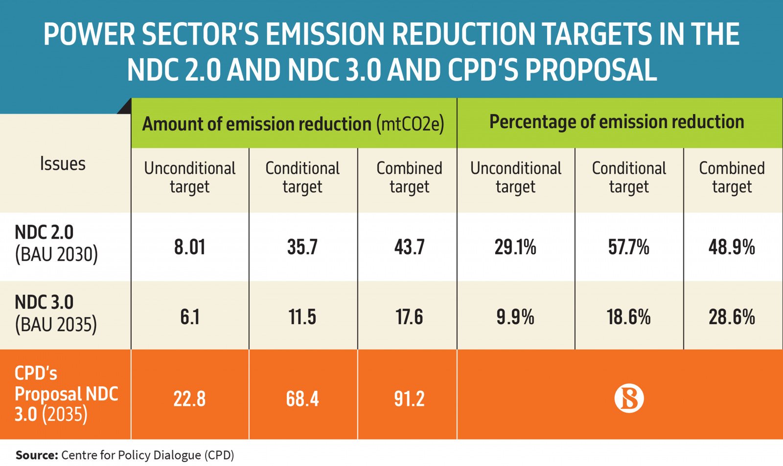 According to CPD (August 2025) the projected ‘ambitious’ targets for the power sector would be as follows — combined emission reduction for 2035 would be 91.2 million tonnes CO2eq — of which, 25% is ‘unconditional’ and the rest 75% is ‘conditional’ targets. Unfortunately, nothing is reflected in the official NDC 3.0 prepared by the DoE.