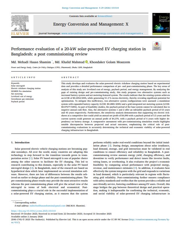Performance Evaluation of a 20-kW Solar-powered EV Charging Station in Bangladesh: A Post Commissioning Review